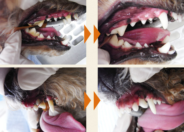 そのため、一度獣医さんの治療を受けて口の中のダメージを確認して頂き、