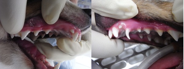 しかしこの犬では下顎の犬歯が上顎の犬歯に当たってしまっていたため、
